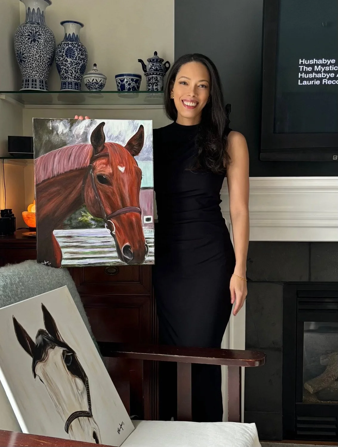 My love for animals, especially dogs and horses made it’s way into my artwork naturally. As an equestrian, I have always been captivated by the beauty, mesmerizing power, and serenity of horses. In 2016 I made the decision to express that on canvas and began my collection of equine portraits. Art and nature are healing, and brings a feeling of joy that can be spread to others, so in 2025 I made the decision to offer my work in a professional manner and help spread that joy further. Thank you for following along with my art journey.